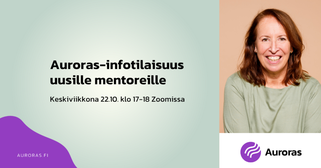 Auroras-verkosto järjestää suomenkielisiä mentorointi- ja kieliryhmiä, joissa vapaaehtoiset mentorit ja kieliryhmien ohjaajat jakavat osaamistaan ja verkostojaan aktoreiden tueksi. Uudet ryhmät käynnistyvät jälleen keväällä 2026. Tule mukaan infotilaisuuteen kuulemaan Auroras-vapaaehtoisuudesta ja kevään ryhmistämme!